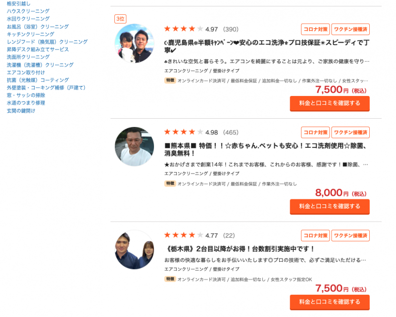もし費用をできるだけ抑えたいのであれば、くらしのマーケットはおすすめのサービスです。