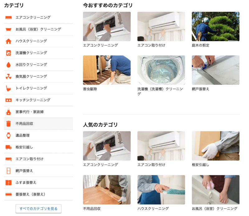 • 1,カテゴリから頼みたいジャンルを選ぶ