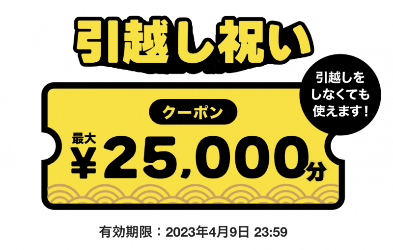 ・2023年4月は引っ越し祝いの最大25,000円オフクーポンプレゼント