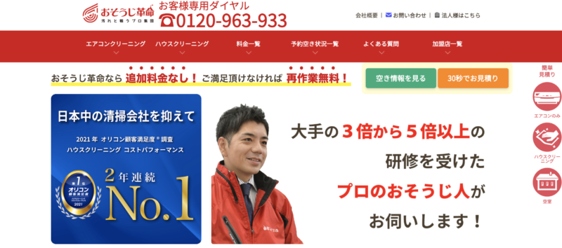 - おそうじ革命|一律料金でコスパ良し