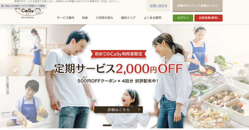 CaSy(カジー)は、掃除代行・料理代行・ハウスクリーニングを提供する会社です。